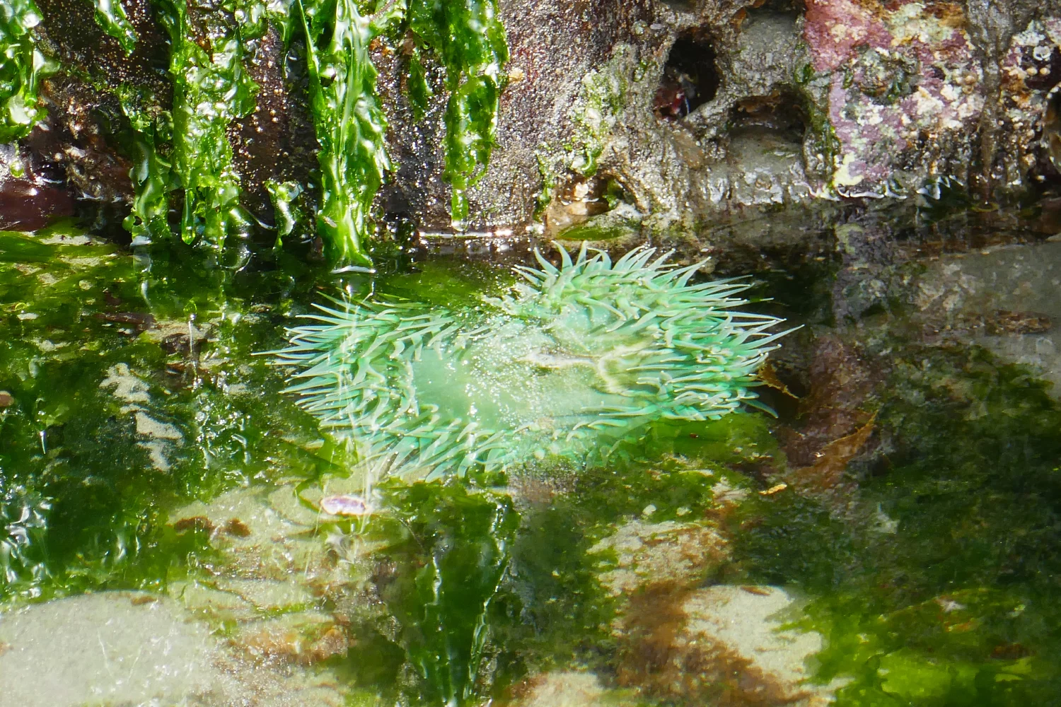 Today was a day to venture to a beach that I had driven by many times and never stopped. Boats for diving and fishing used to launch here, but the winter seems to have taken a toll and the buildings are all closed. It is still a wonderful spot to paint! The water is crystal clear and you can see the tidal area life on the ocean bottom. Two sea otters are playing in the kelp and a couple of eagles watch from above—a perfect afternoon.